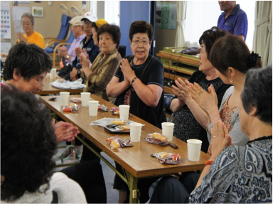 演奏会の後はテイ―タイム。“あらア、みな石巻の人っすか?んだら、まだ来れっぺさ”